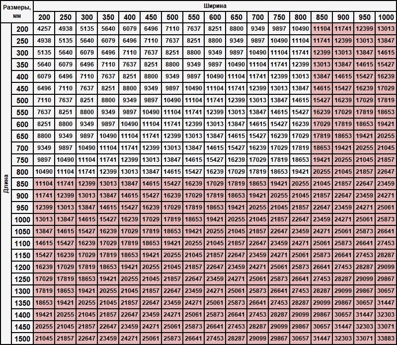 Цены нестандартных (заказных) размеров люка Премиум Лайт, руб.