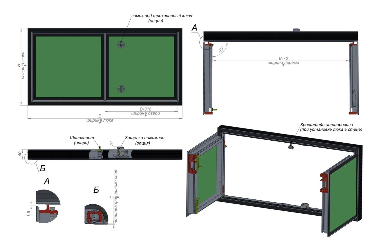 Для люков шириной свыше 800 мм предусмотрена система Антипровис, что полностью исключает провисание дверцы в процессе эксплуатации.