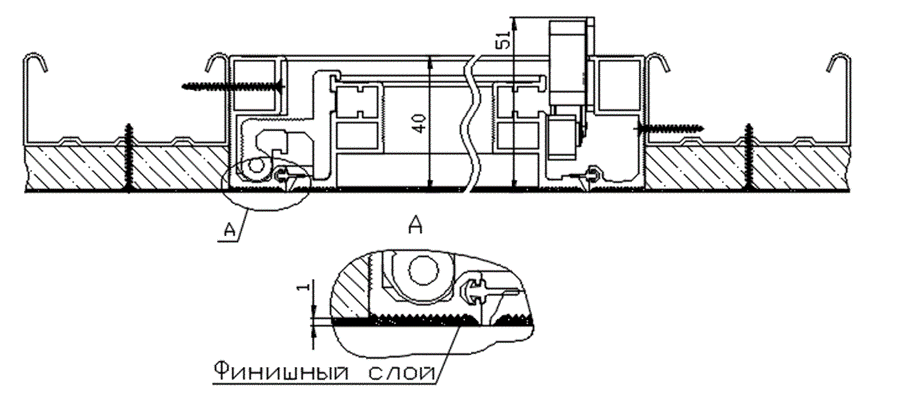 Узкий профиль (УП) производится установочной глубиной 40мм, под заказ доступны люки глубиной 50 и 63 мм. Устанавливается в стены и перегородки, а также в потолок (со страховочными тросиками)
