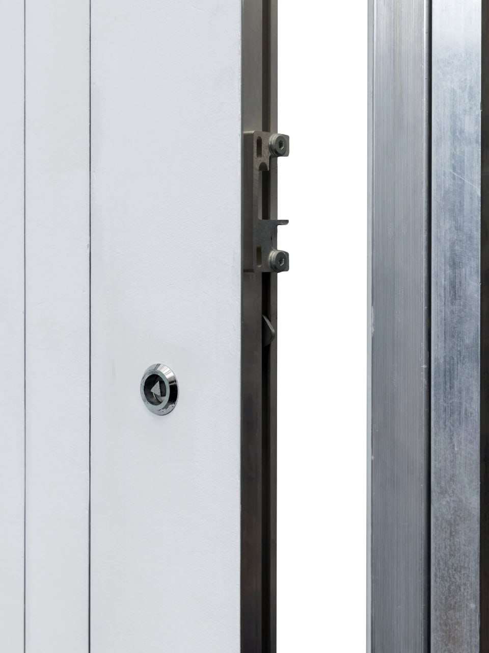 Особая гордость люка – быстросъёмные дверные петли, они задают точную траекторию открывания двери. Люк можно установить в узкий проём «от стены до стены», при этом дверь не упрётся в стену