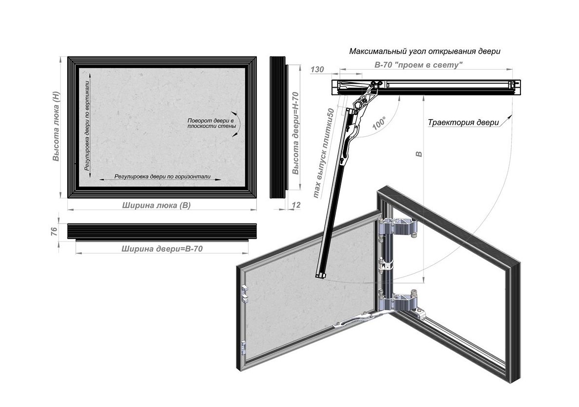 Люк-дверь предназначен для установки в стены и перегородки
