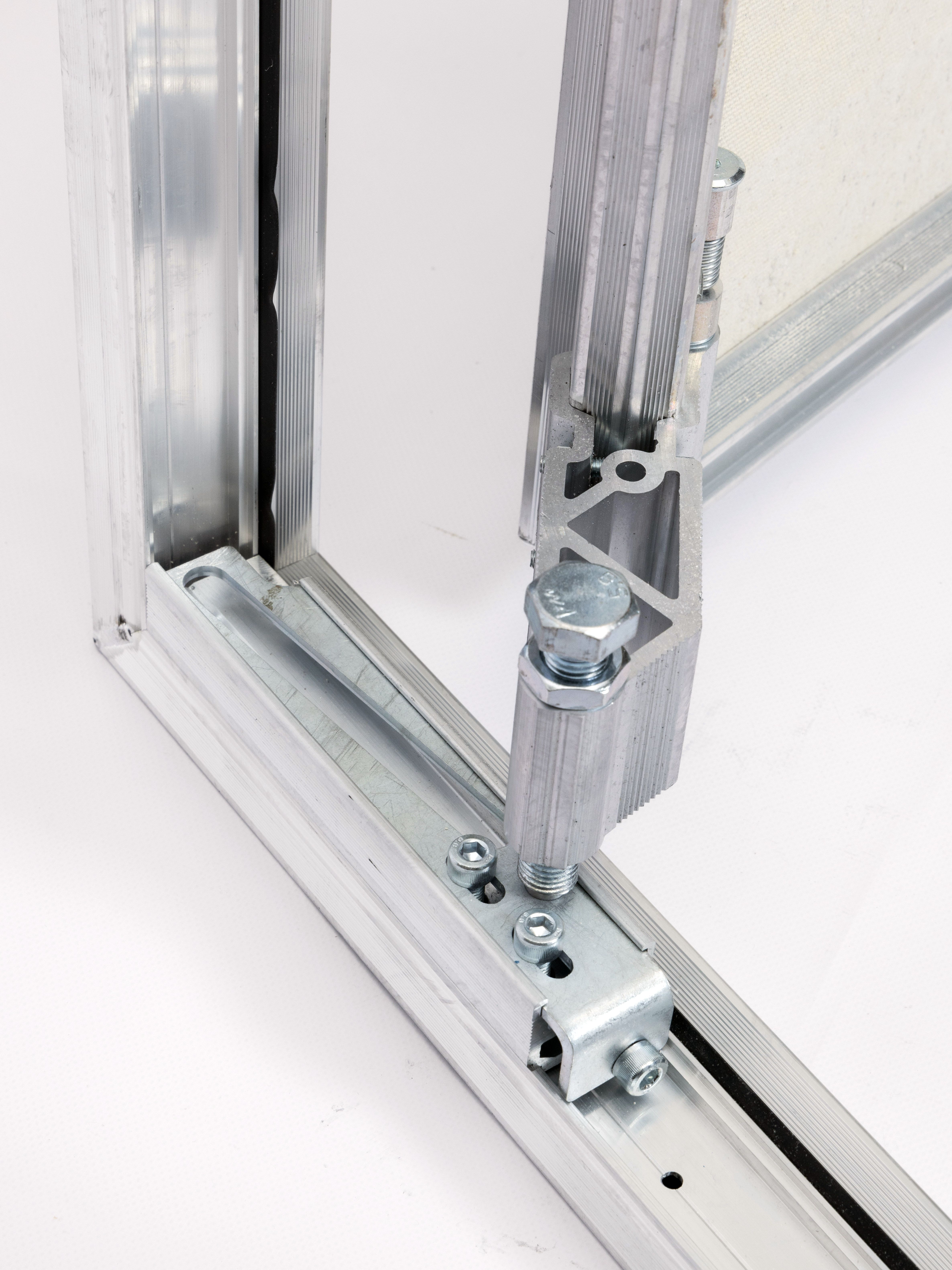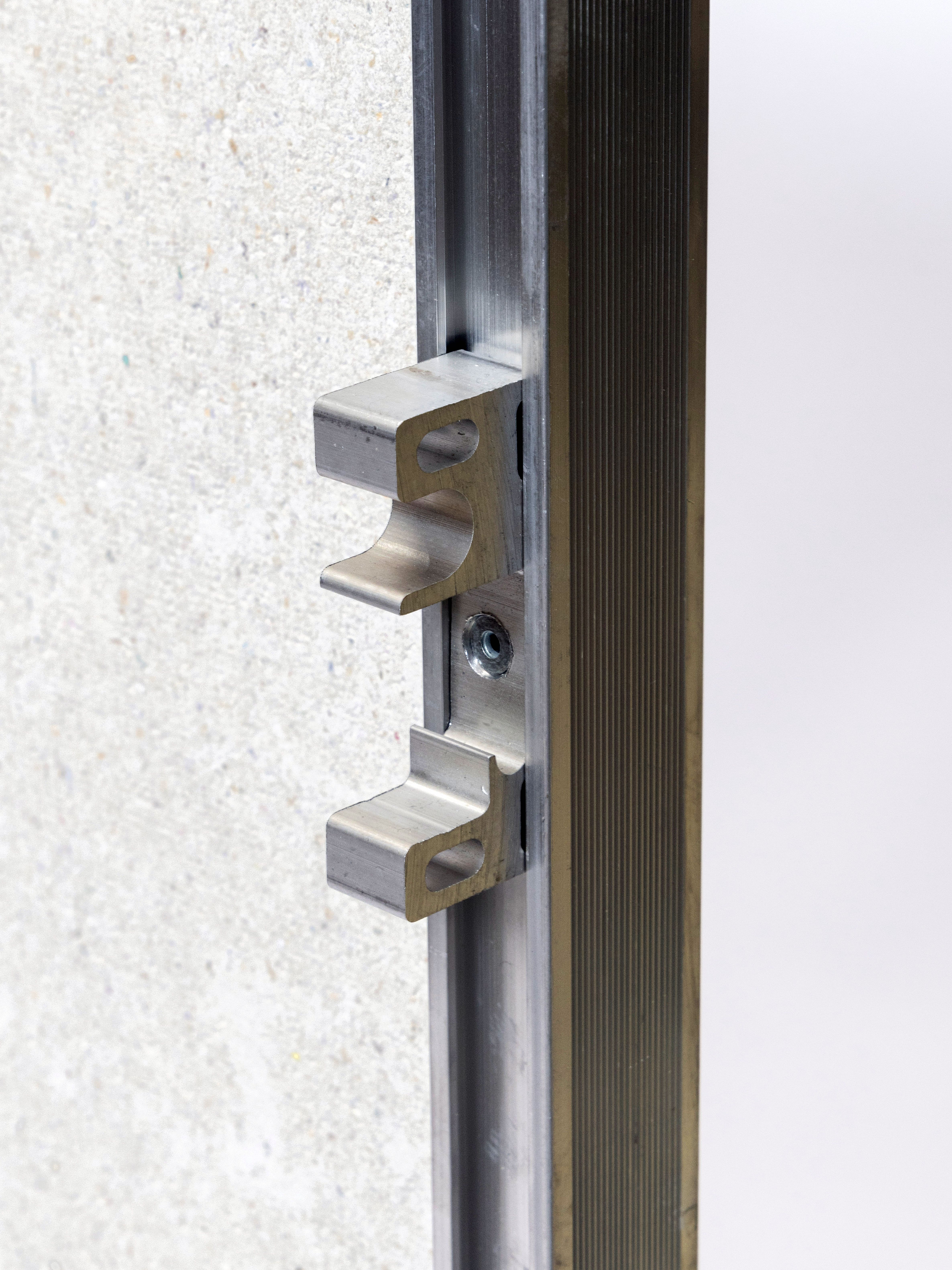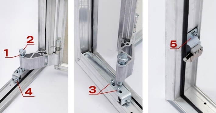 Ответная часть замка (крючок) выполнена из алюминиевого сплава. Возможность регулировки дверцы по вертикали и горизонтали и снятие дверцы вместе с петлёй