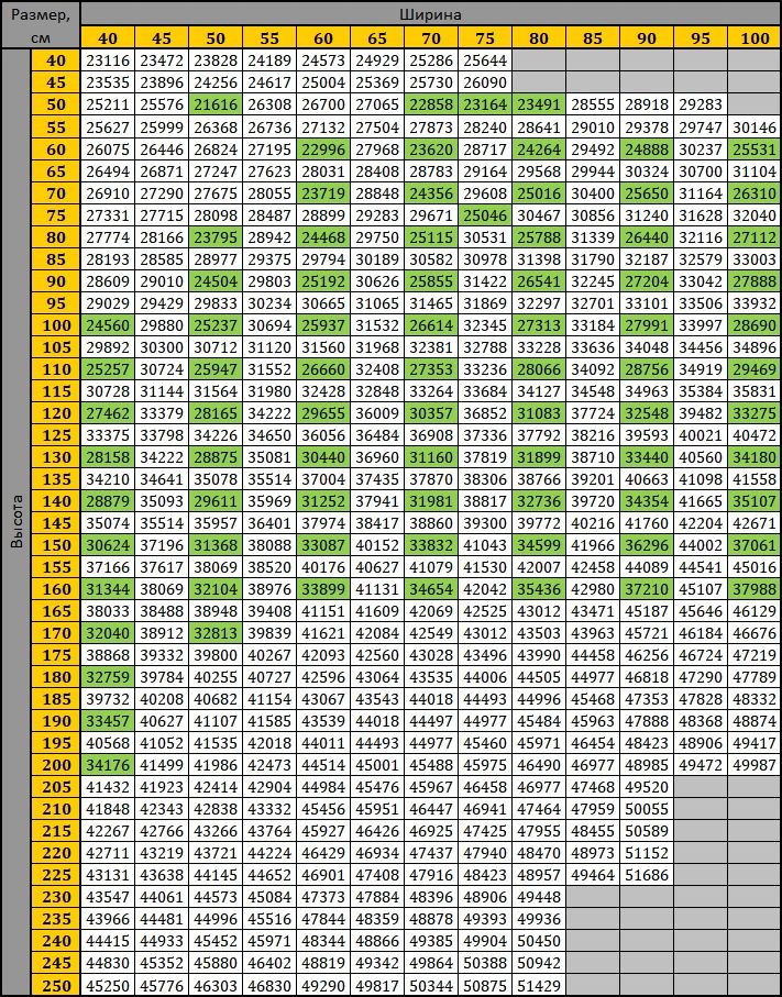 Цены нестандартных (заказных) размеров люк-двери под плитку Мощный, руб.
