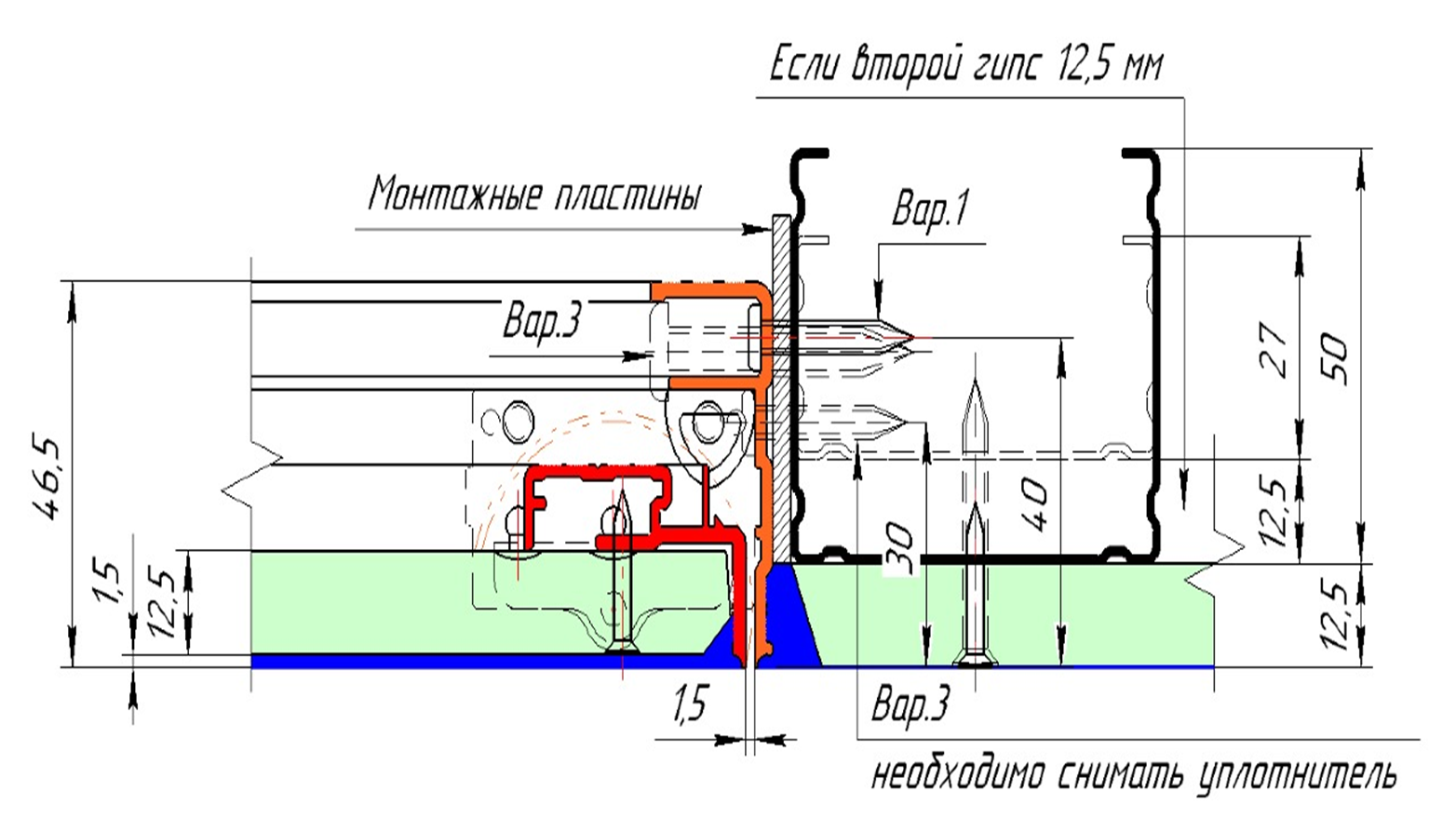 Заполнение дверцы: влагостойкий гипсокартон толщиной 12,5 мм