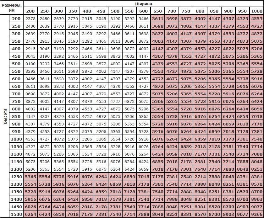Цены нестандартных (заказных) размеров, руб.